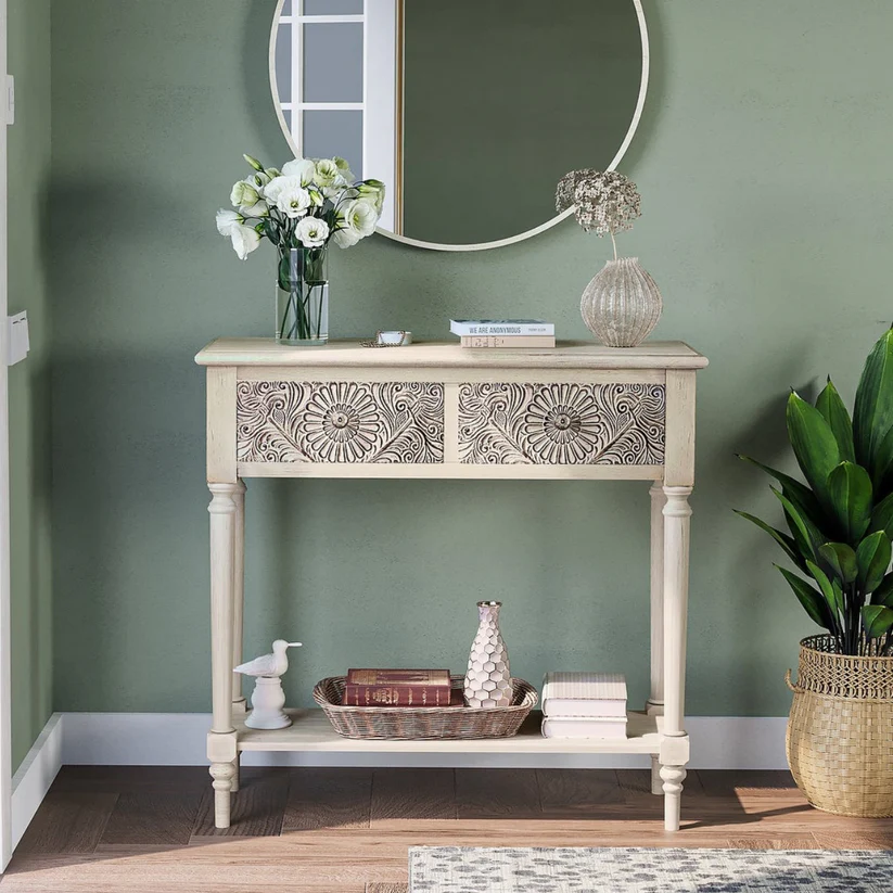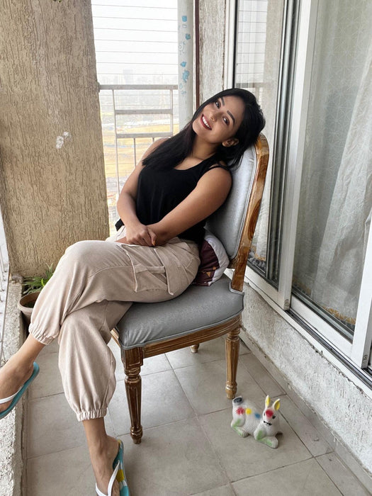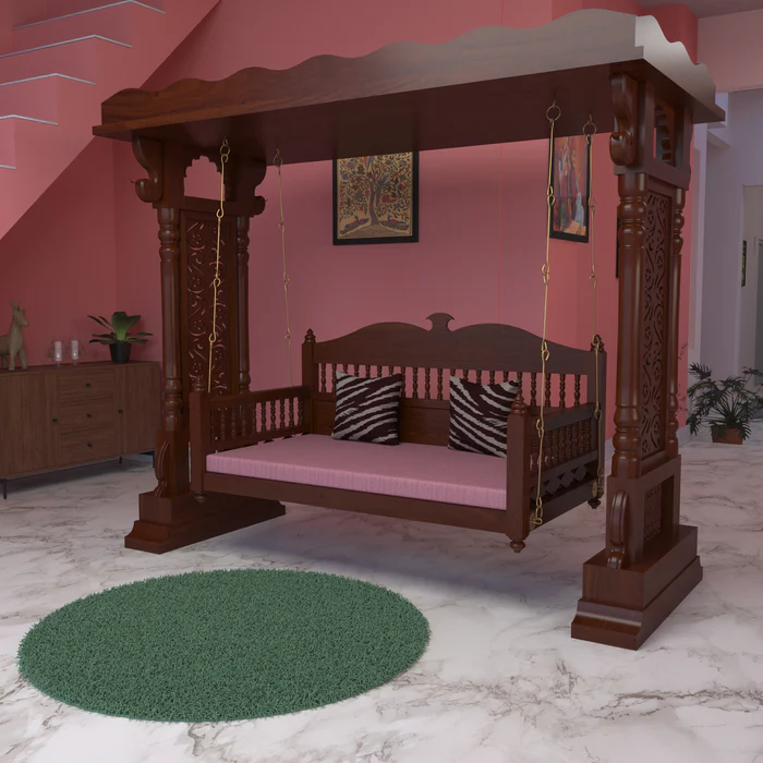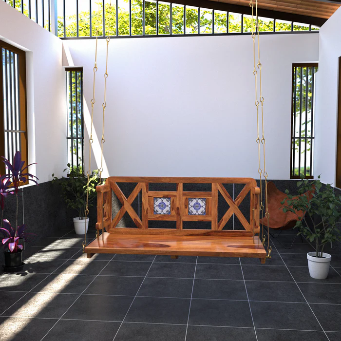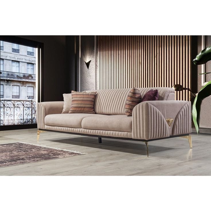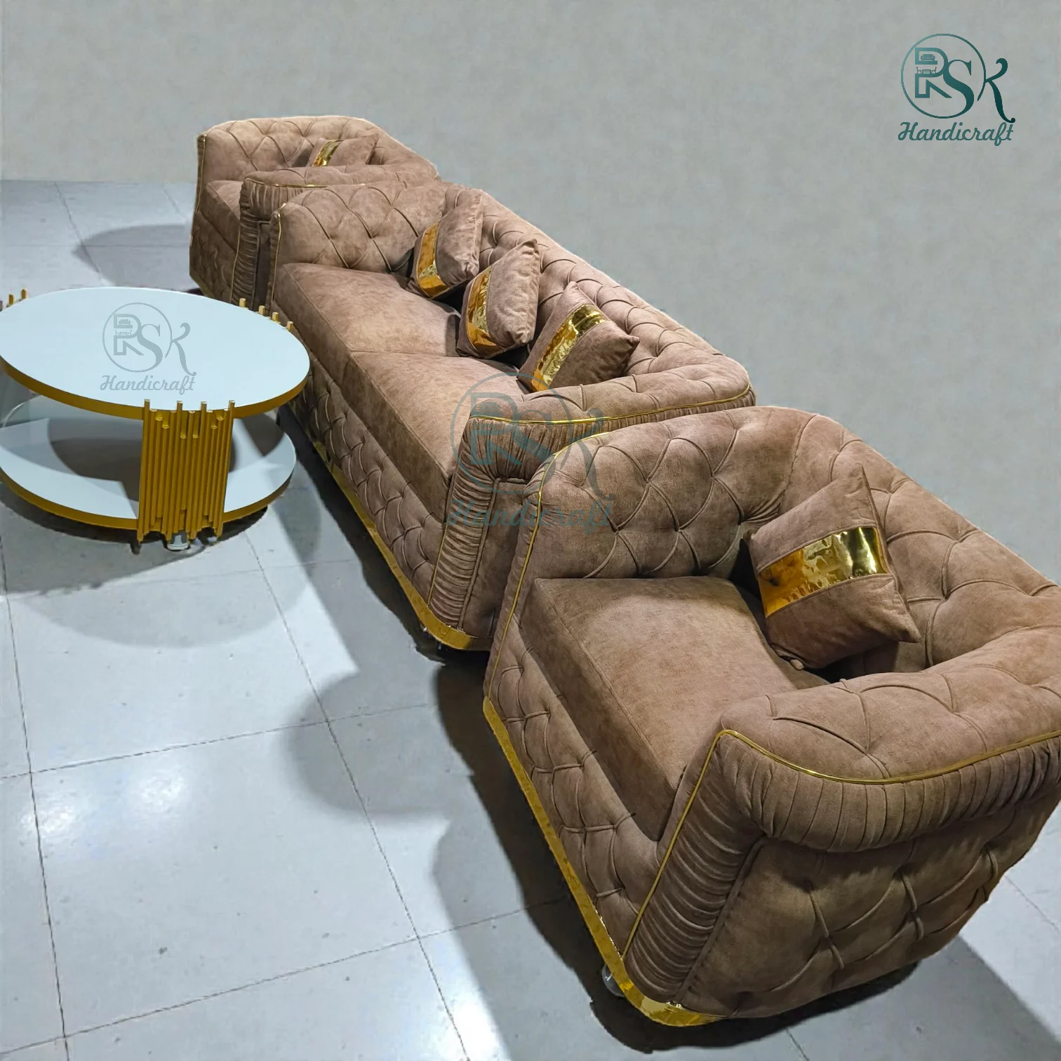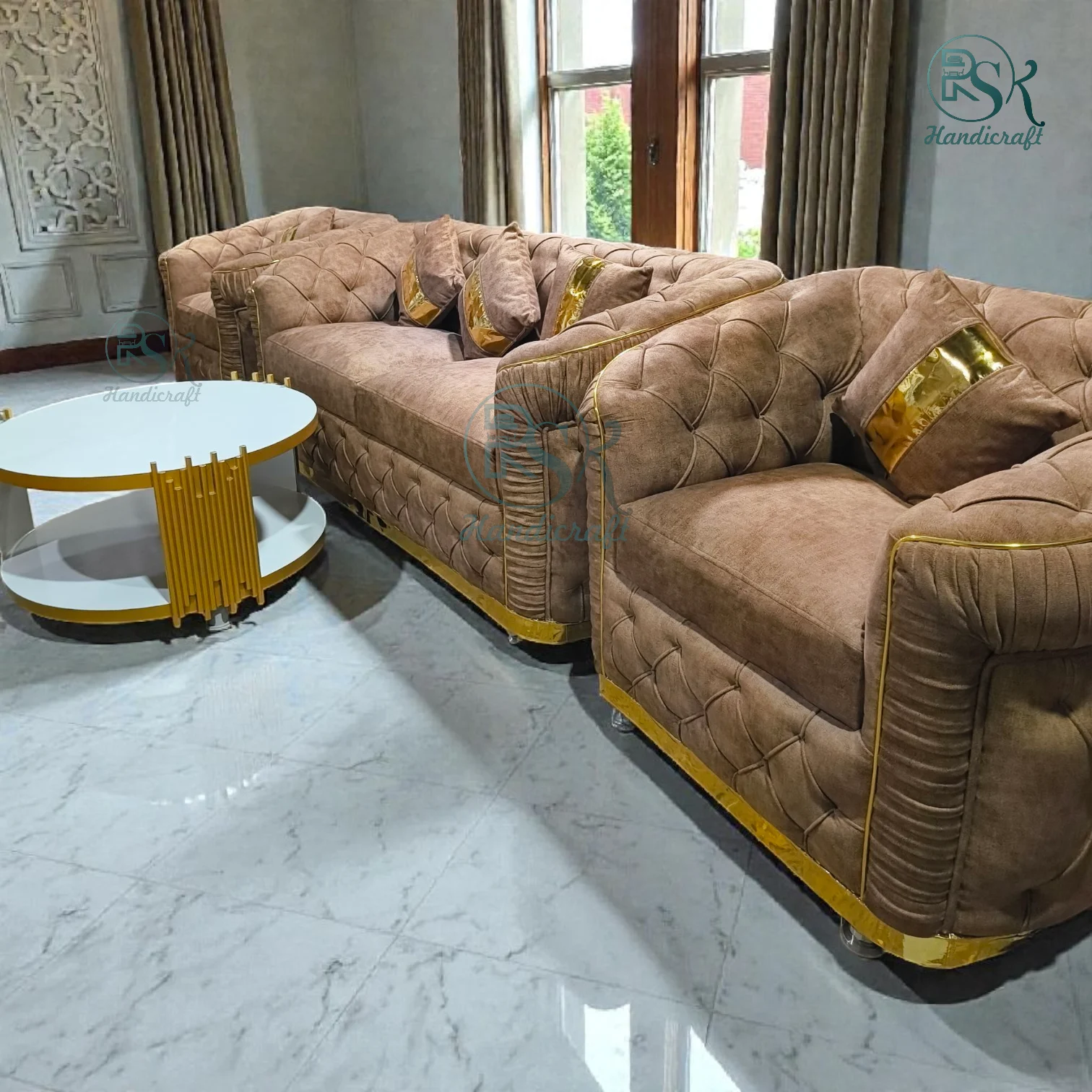 (Teak Wood ) Velvet 3 Seater Sofa I