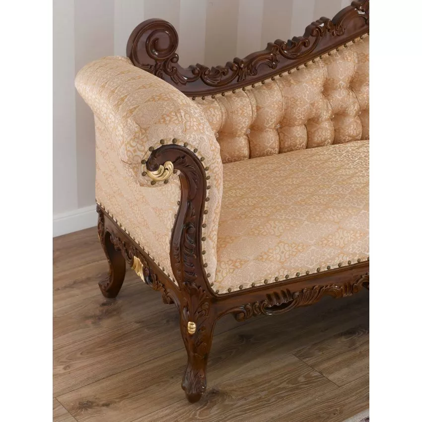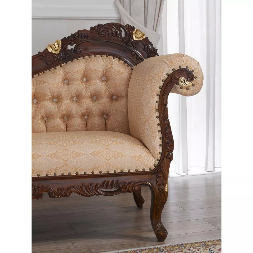 Alejandra Hand Carved Teak Wood 3-Seater Chaise Longue Sofa Gold Leaf & Walnut Finish