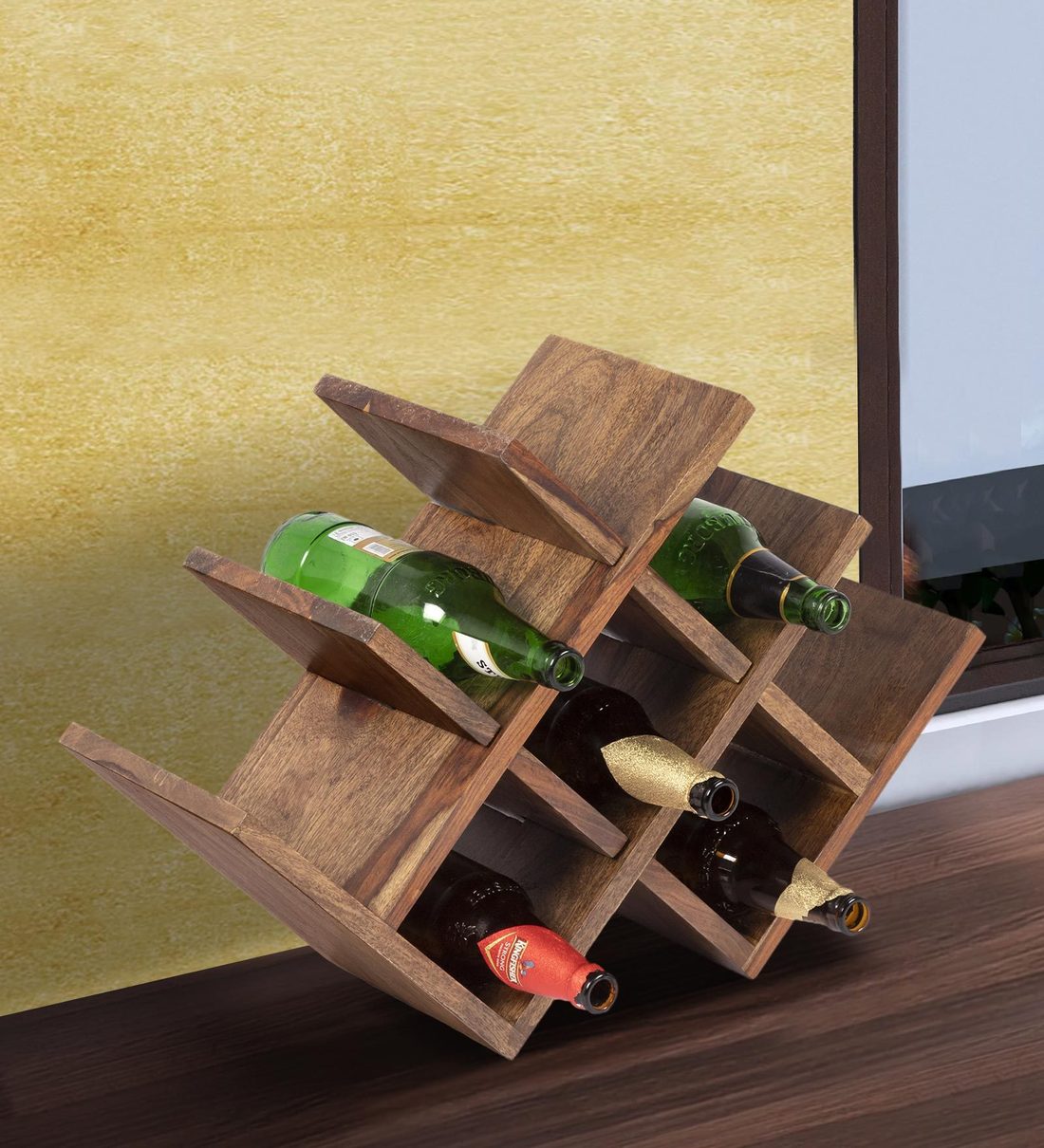 Elevate your wine storage with the Natural Art & Crafts Brvo Teak Wood Wine Bottle Holder, an 8-bottle rack crafted from high-quality, durable teak wood. Its rustic charm adds a touch of elegance to your home, kitchen, or bar, offering a natural and stylish solution for organizing and displaying your favorite bottles of wine. Whether you’re a wine enthusiast or looking for a unique decor piece, this wooden wine rack fits perfectly on countertops, shelves, or in wine cellars, providing easy access and a visually appealing display. The compact, space-saving design makes it a perfect addition to any setting, allowing you to store your wine collection in style.