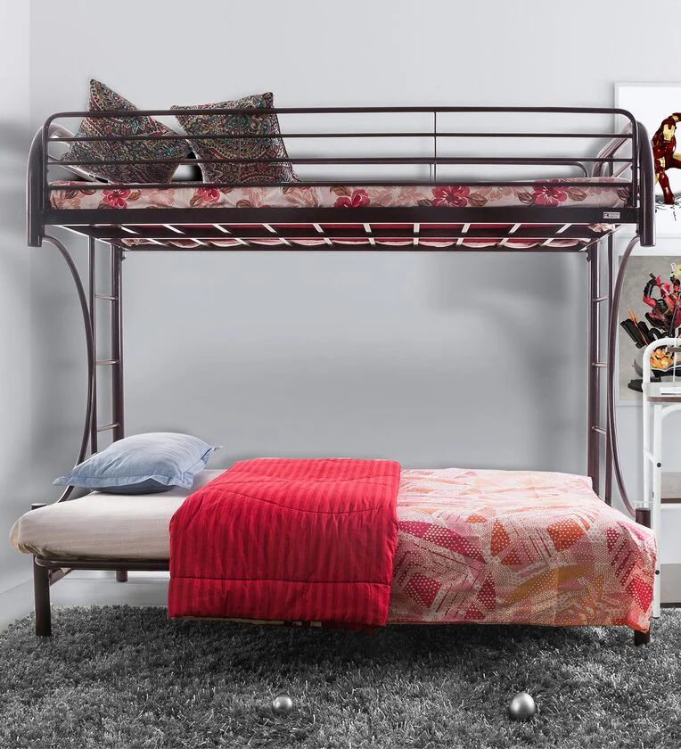 Maximize your space without compromising on comfort and style with the Natural Art & Crafts Bucharest Metal Bunk Bed for Adults. Designed with a durable, heavy-duty metal frame, this space-saving bunk bed offers a sturdy and reliable sleeping solution for dormitories, shared bedrooms, or guest rooms. The vibrant red finish adds a modern touch to any room, while the industrial design blends seamlessly with contemporary decor. Equipped with safety rails on the top bunk and an easy-to-climb ladder, this bunk bed ensures a secure and comfortable sleeping environment. Assembly is straightforward, making it an ideal choice for anyone looking to enhance their living space with a multifunctional and stylish bed.