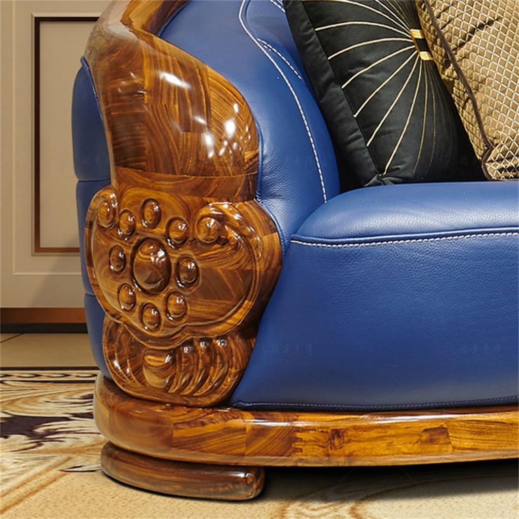 Introducing the Natural Art & Craft European Style Hand Carved Teak Wood Leatherette 3 Seater Chaise Lounge Sofa, a masterpiece that combines timeless elegance with luxurious comfort. Crafted with precision and care, this exquisite sofa is designed to enhance the beauty of any living room, offering both style and sophistication.