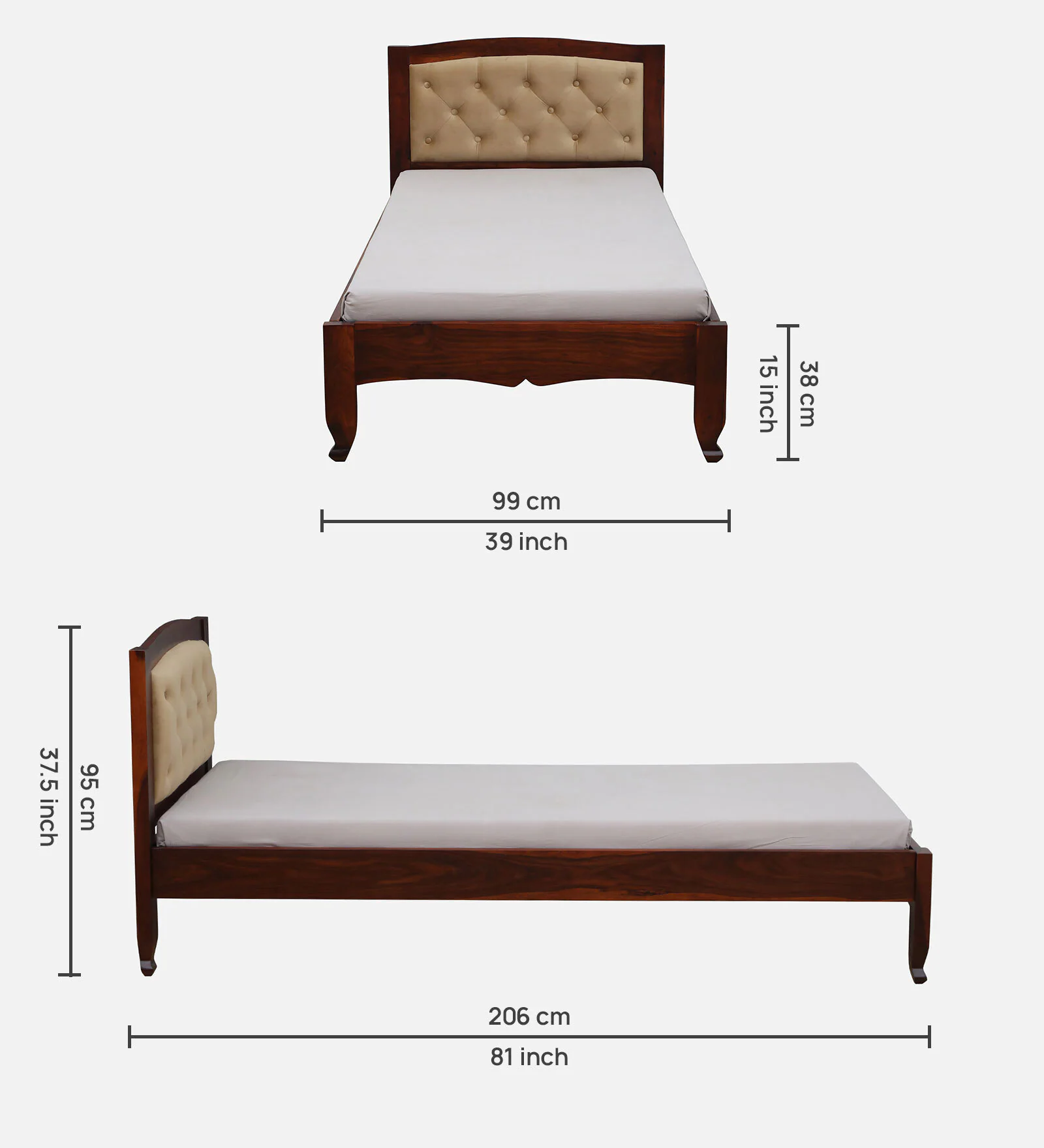 The Natural Art & Craft Amiens Handmade Teak Wood Button Tufted Single Bed is a masterpiece of craftsmanship, blending luxury with durability. Made from premium-grade teak wood, this single bed is not only sturdy but also exudes timeless elegance. The button-tufted upholstery adds a touch of sophistication, making it a perfect addition to any bedroom. Designed to offer comfort and style, this bed is handcrafted to perfection, ensuring that it stands out as a centerpiece in your home. Whether you’re looking for a bed that offers both beauty and functionality, the Amiens Teak Wood Single Bed is an ideal choice.