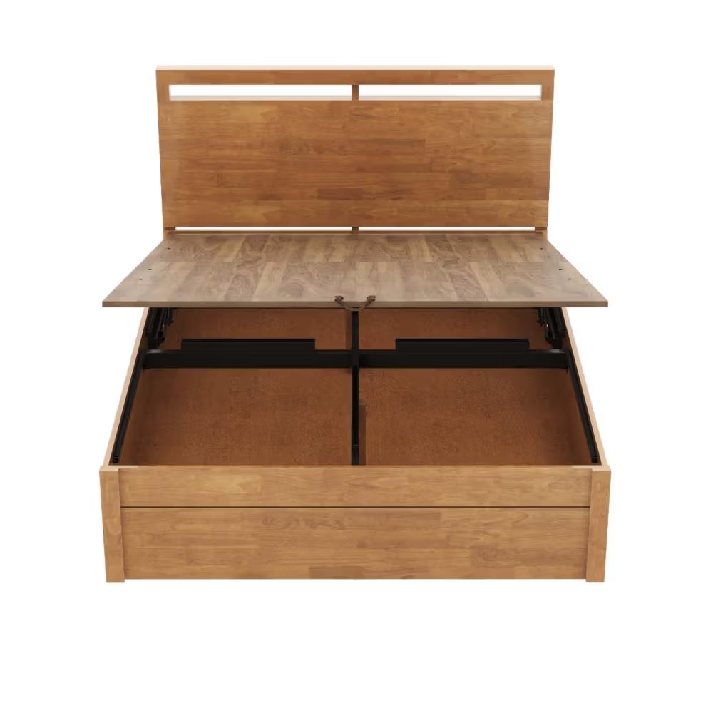 Natural Art & Crafts Crucis Handmade Premium Teak Wood Hydraulic Storage King Size Bed Modern Space Saving Design with Elegant Natural Finish