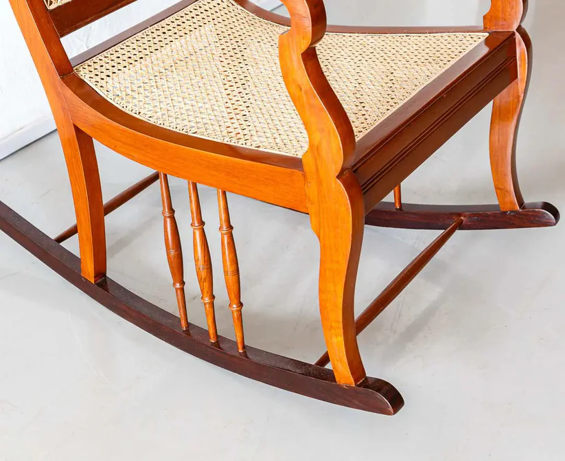 Natural Art & Crafts Meghan Handmade Teak Wood Cane Rocking Chair with Ergonomic Design and Honey Finish for Indoor Living Room