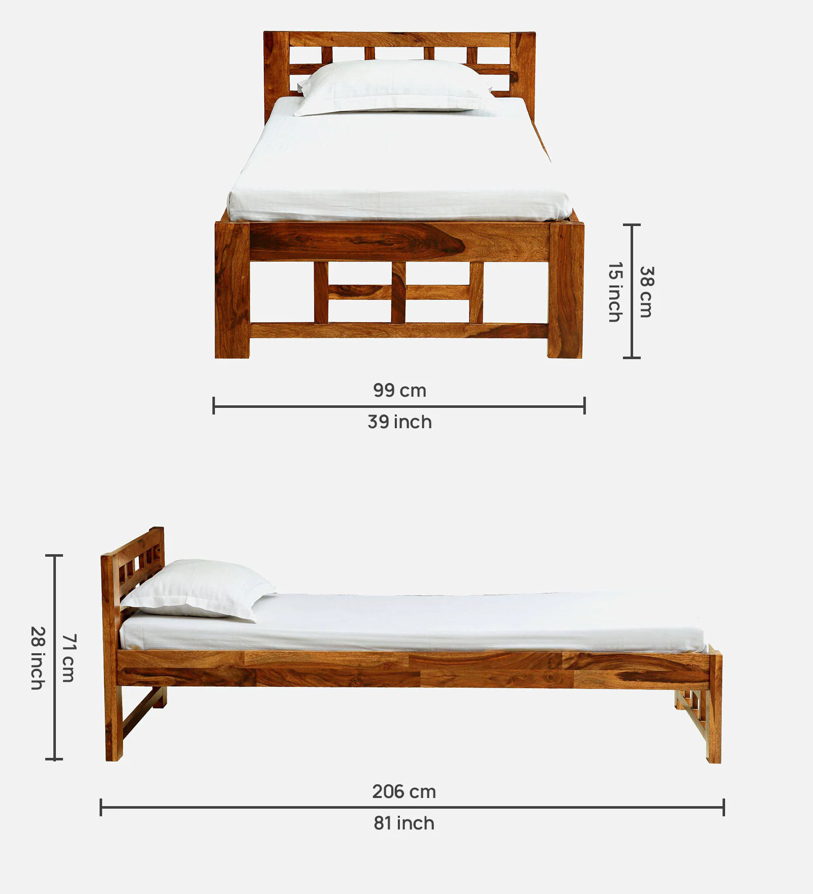 Raliegh Handmade Single Bed Frame Solid Teak Wood, Durable & Eco-Friendly Design (Teak Finish)