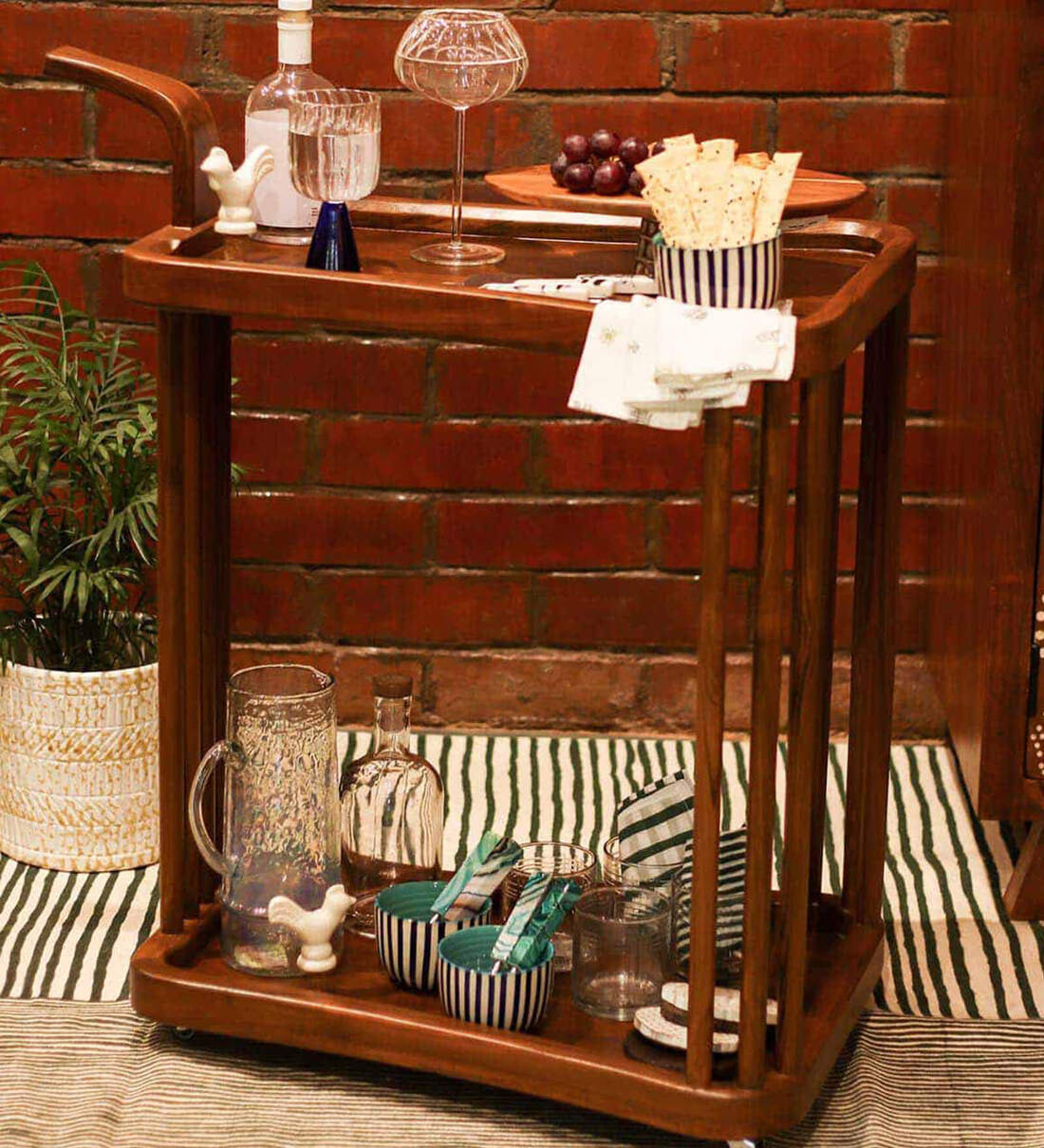 Be the first to review “Spindle Handmade Teak Wood 2 Tier Bar Serving Trolley with Wheels (Natural Teak Finish)”