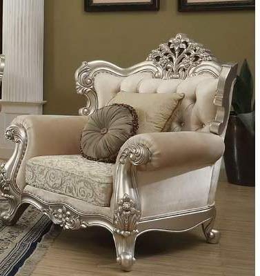 Megan French Baroque Style Teak Wood Button Tufted 2 Seater Chaise Lounge Sofa Silver Finish ( White )
