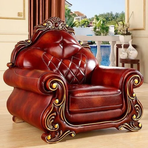 Wooden Carved Teak Wood European-Style Luxury Single Seater Sofa